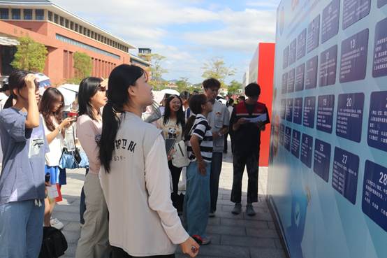 据了解,活动将持续至10月24日,每天分别组织不同学院的师生参与,活动地点为图书馆北门前广场,师生们可以通过参与各点打卡集章互动,兑换文创礼品。