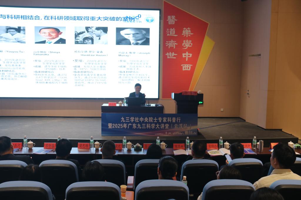 为拓宽师生的专业视野,营造良好的学术氛围,2025年11月16日上午,我校云浮校区联合九三学社云浮市基层委共同举办“2025年九三学社中央院士专家大讲堂”活动。讲座由中国工程院院士、北京协和医学院长聘教授,九三学社中央院士工作委员会委员徐兵河主讲。云浮市政协副主席苏全喜主持活动。我校党委副书记、校长翟理祥代表学校会见了徐院士一行。